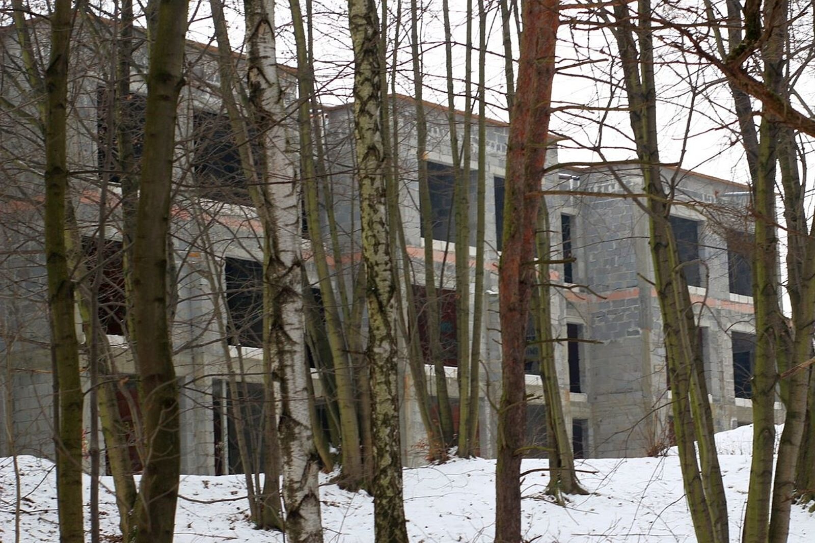 Ta inwestycja nie została jednak dokończona. Domy bez drzwi i okien upodobali sobie „artyści malujący sprayem”, pozostawiając na ścianach swoje malowidła.