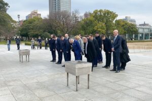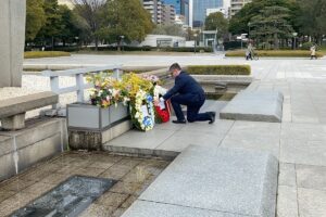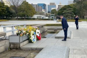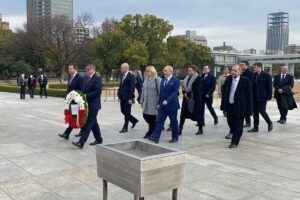 W czasie wizyty polska delegacja złożyła kwiaty w Hiroszimie pod pomnikiem upamiętniającym ofiary ataku atomowego z sierpnia 1945 r.