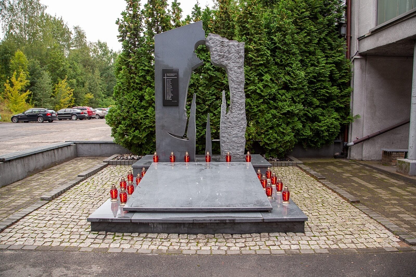 Tuż po katastrofie symbolem pamięci o zmarłych górnikach był krzyż znajdujący się w pobliżu wejścia do kopalni. W 2011 r., w drugą rocznicę katastrofy, odsłonięto jednak monument. Ma on wymiar przestrzenny i składa się z dwóch ponad trzymetrowych granitowych bloków, których zarysy tworzą postać górnika. Autorkami pomnika są Aleksandra Naparło-Czyż i Sylwia Kasperczak, natomiast jego projekt architektoniczny wykonał Stanisław Burmistrz. Całość przygotowała i koordynowała katowicka agencja Arch.