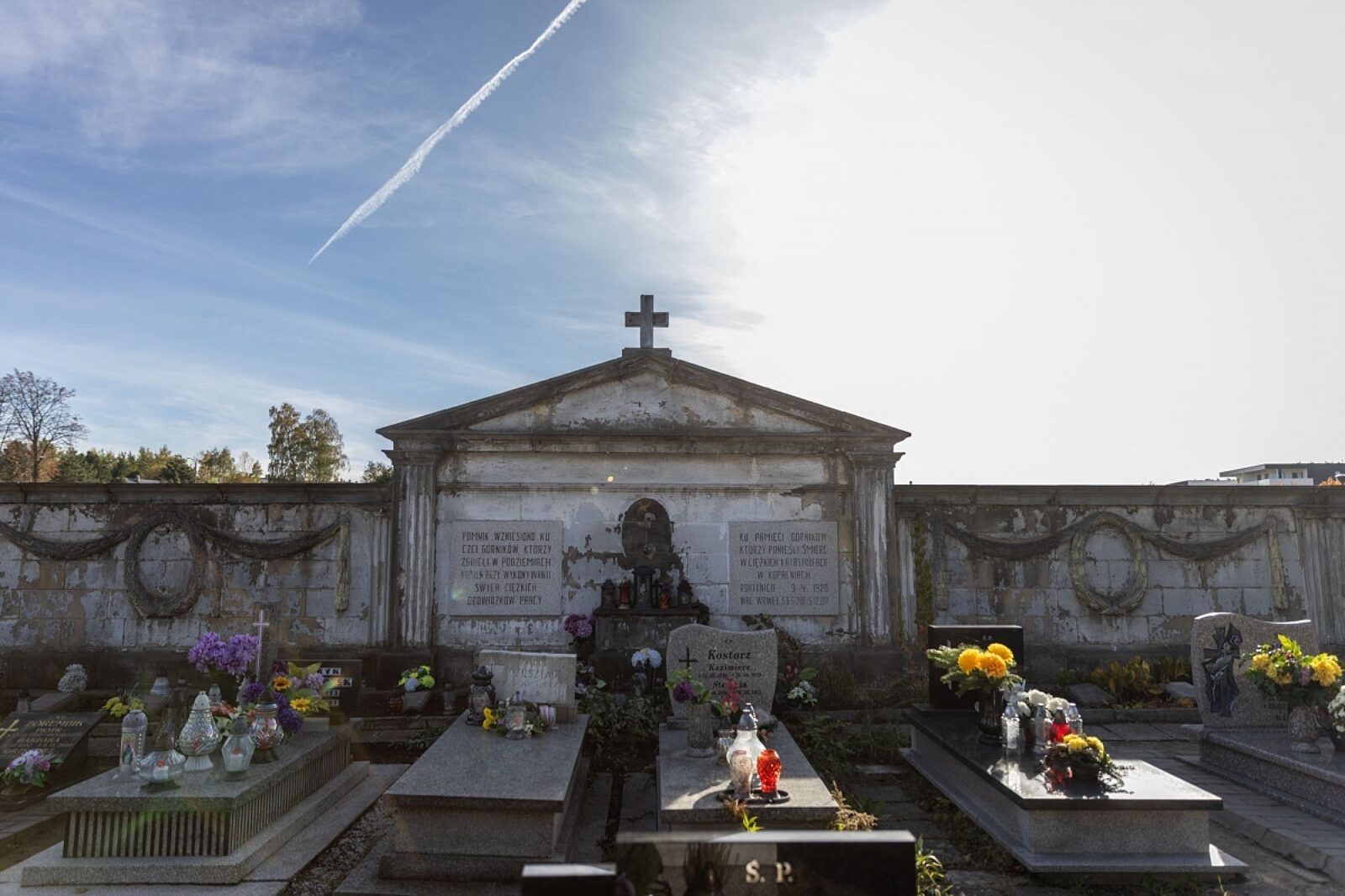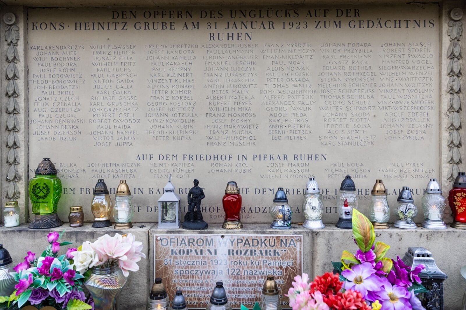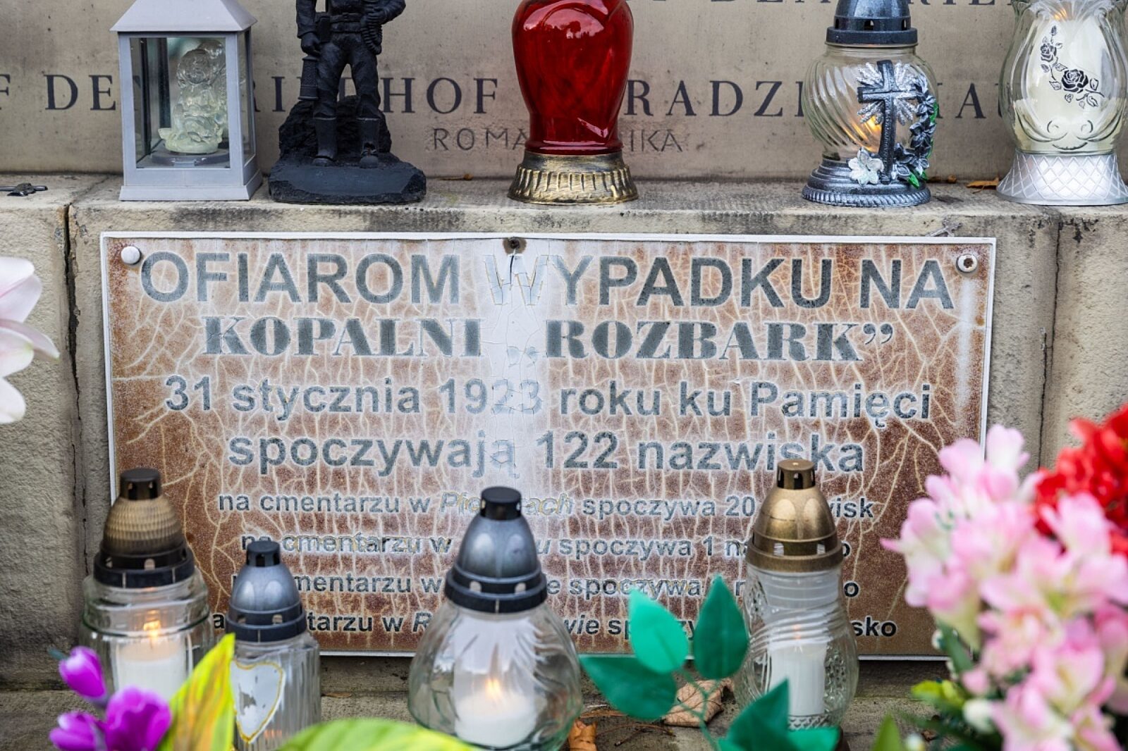 Zapal symboliczny znicz na grobie górnika
