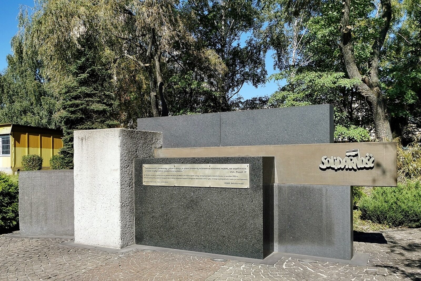 Pomnik, który znajduje się przed bramą główną Huty Katowice w Dąbrowie Górniczej, został odsłonięty w 30. rocznicę podpisania Porozumienia Katowickiego
