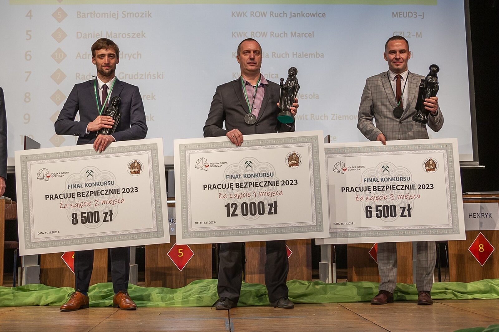Półfinał „Pracuję bezpiecznie” odbędzie się 5 listopada. Jego gospodarzem będzie kopalnia Piast-Ziemowit. Na tym etapie pracownicy zmierzą się z zadaniem pisemnym składającym się z 30 pytań. Z grona ponad 60 osób wyłonionych zostanie dziesięciu finalistów, którzy będą walczyć o tytuł mistrza bhp i czek na 12 tys. zł. Warto dodać, że zdobywca drugiego miejsca otrzyma 8 tys. zł, a trzeciego – 6,5 tys. zł. W minionym roku w konkursie triumfował Tomasz Oboński, sztygar zmianowy oddziału przodkowego GRP-W1 z ruchu Wujek kopalni Staszic-Wujek. Zgodnie z tradycją konkursu to właśnie kopalnia, z której pochodzi ostatni zwycięzca, organizuje finał zmagań. Ten zaplanowano na 15 listopada.