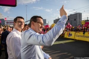 Po południu premier wziął udział w zakończeniu II etapu Tour de Pologne w centrum Katowic.