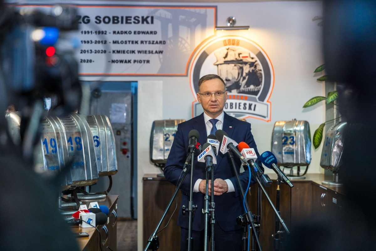 Prezydent podkreślił, że łączy się z całą społecznością kopalni Sobieski, spółki Tauron Wydobycie i Jaworzna. Mówił, że jest to dla niego osobiście szczególne bliskie miejsce ze względu na to, że właśnie tu pracował jego ojciec chrzestny, który jest już na emeryturze.