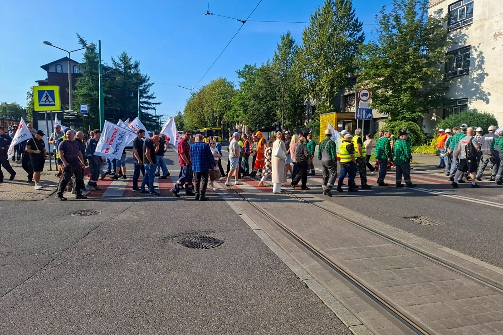 Protest hutników pod Hutą Pokój