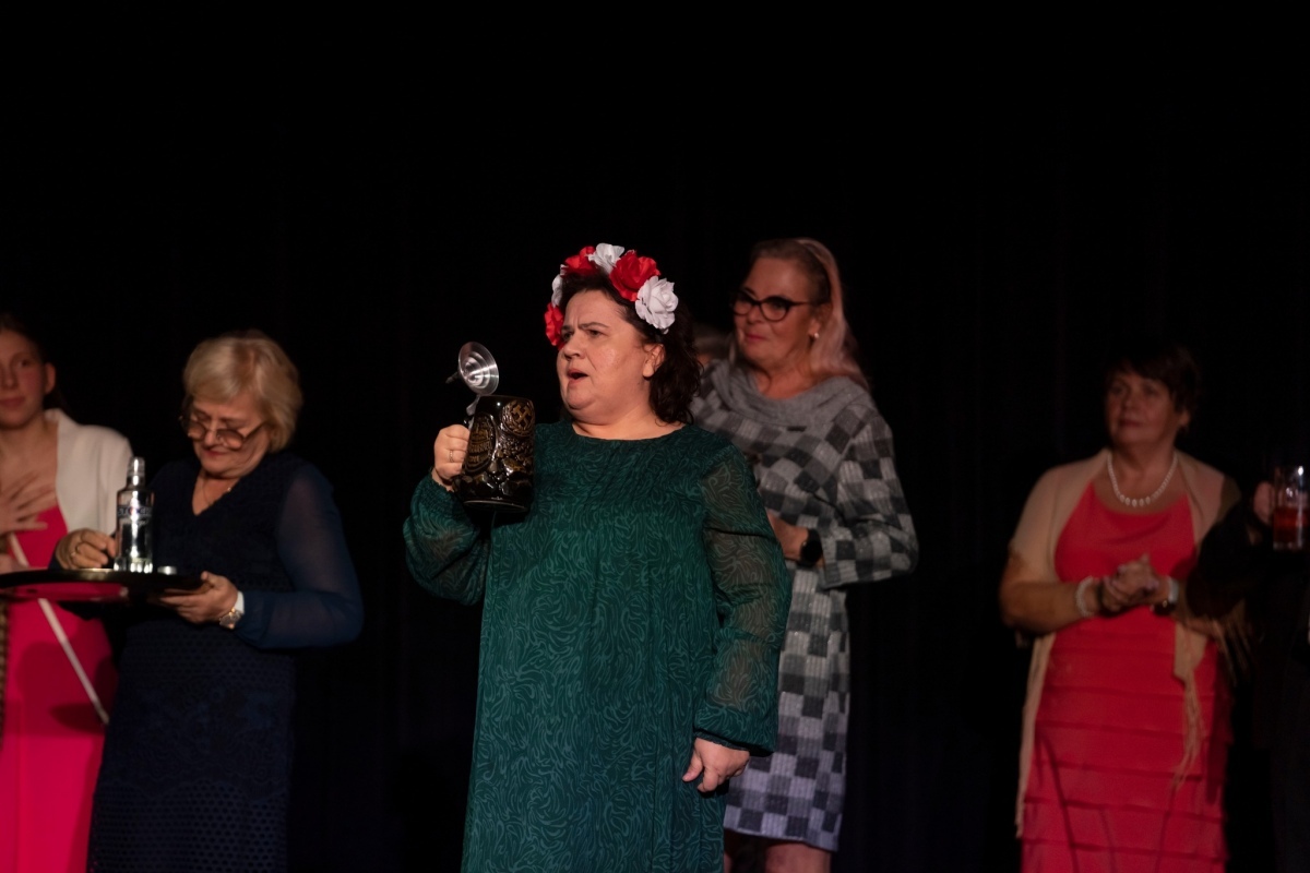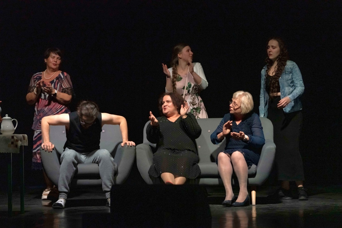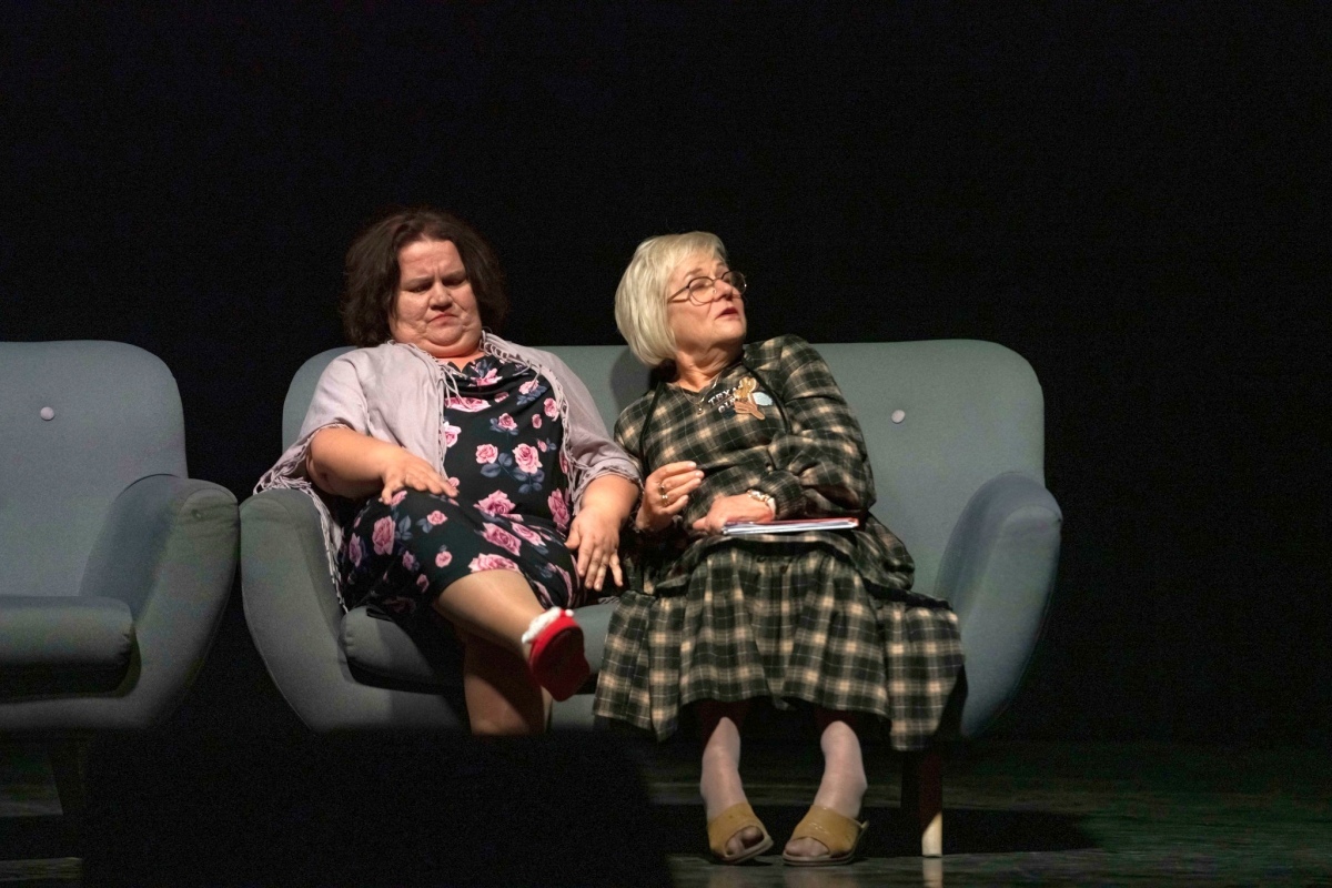 Jolanta Kiszka (siedząca w środku) w spektaklu "Pokoleniowe szepty" Grupy Aktorskiej Chaos