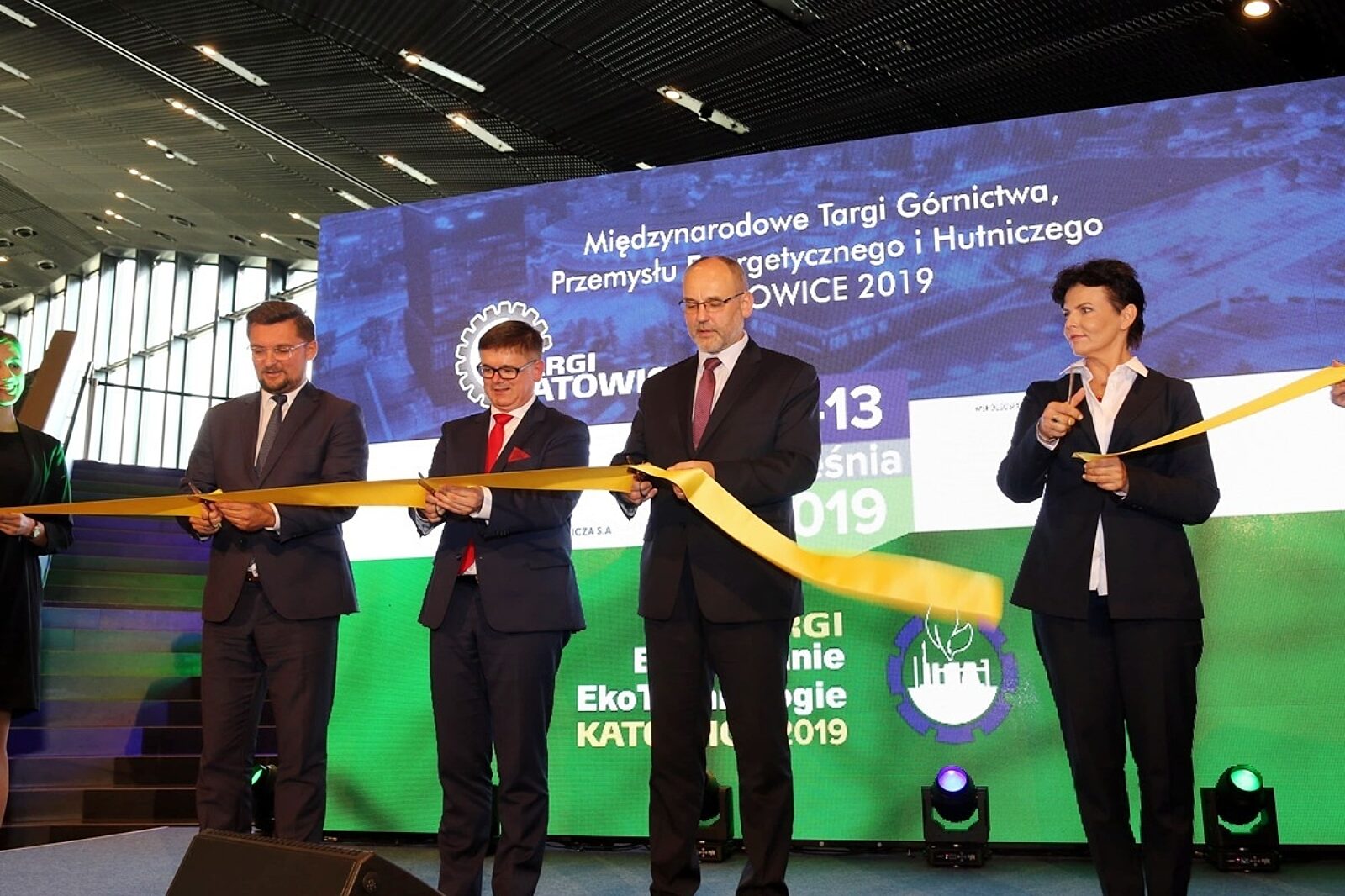 Symbolicznego przecięcia wstęgi dokonali: wiceminister energii Adam Gawęda, Główny Geolog Kraju Piotr Dziadzio, prezydent Katowic Marcin Krupa oraz prezes Polskiej Techniki Górniczej SA Iwona Gramatyka