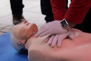 Ratownicy CSRG w Bytomiu pokazywali na katowickim rynku, jak używać defibrylatorów