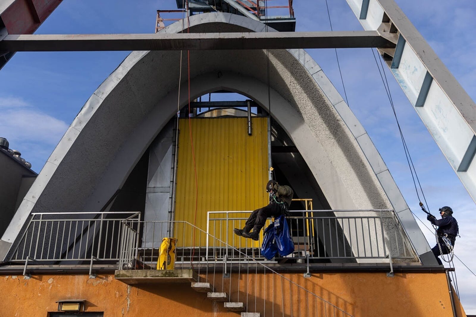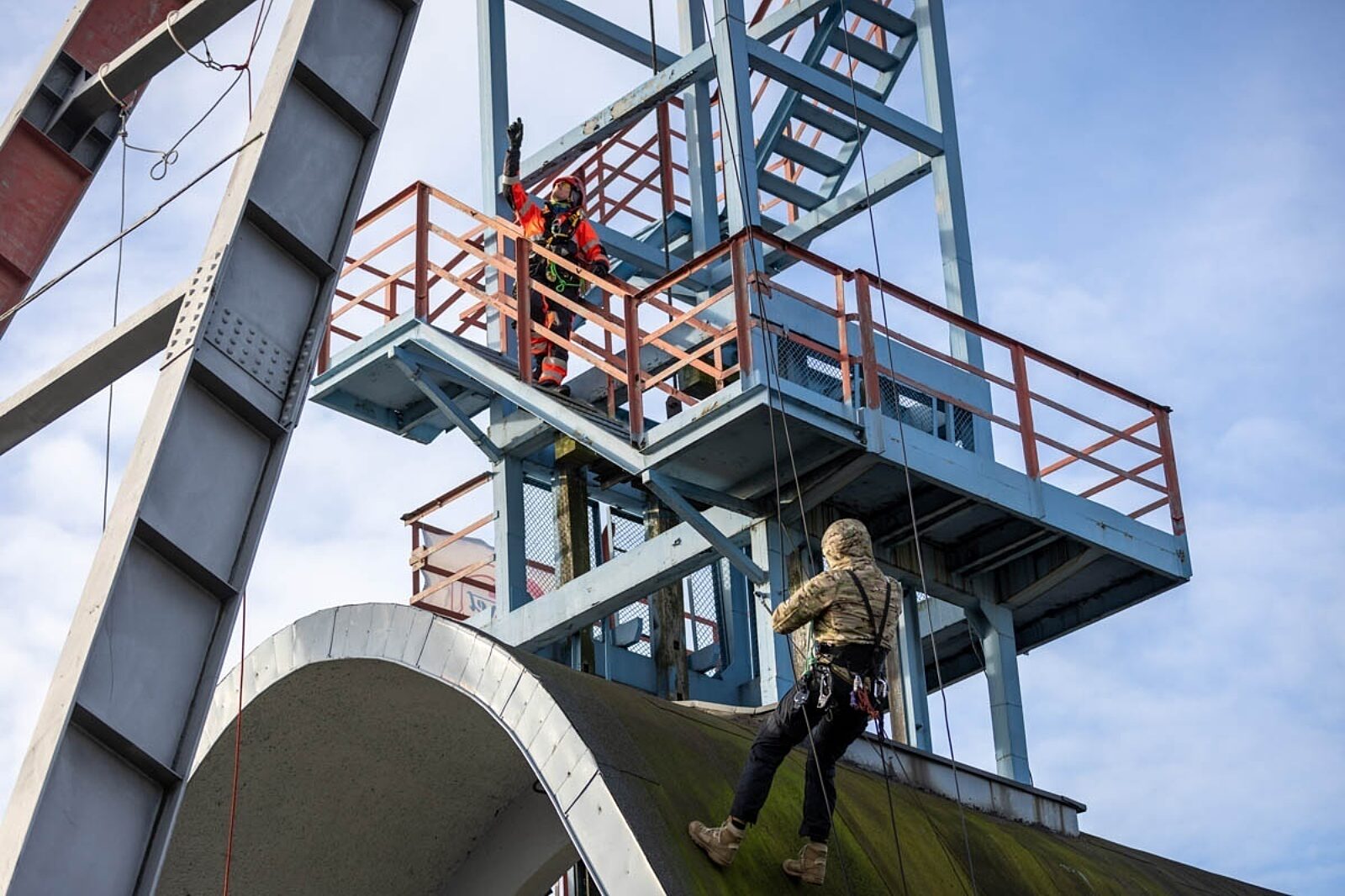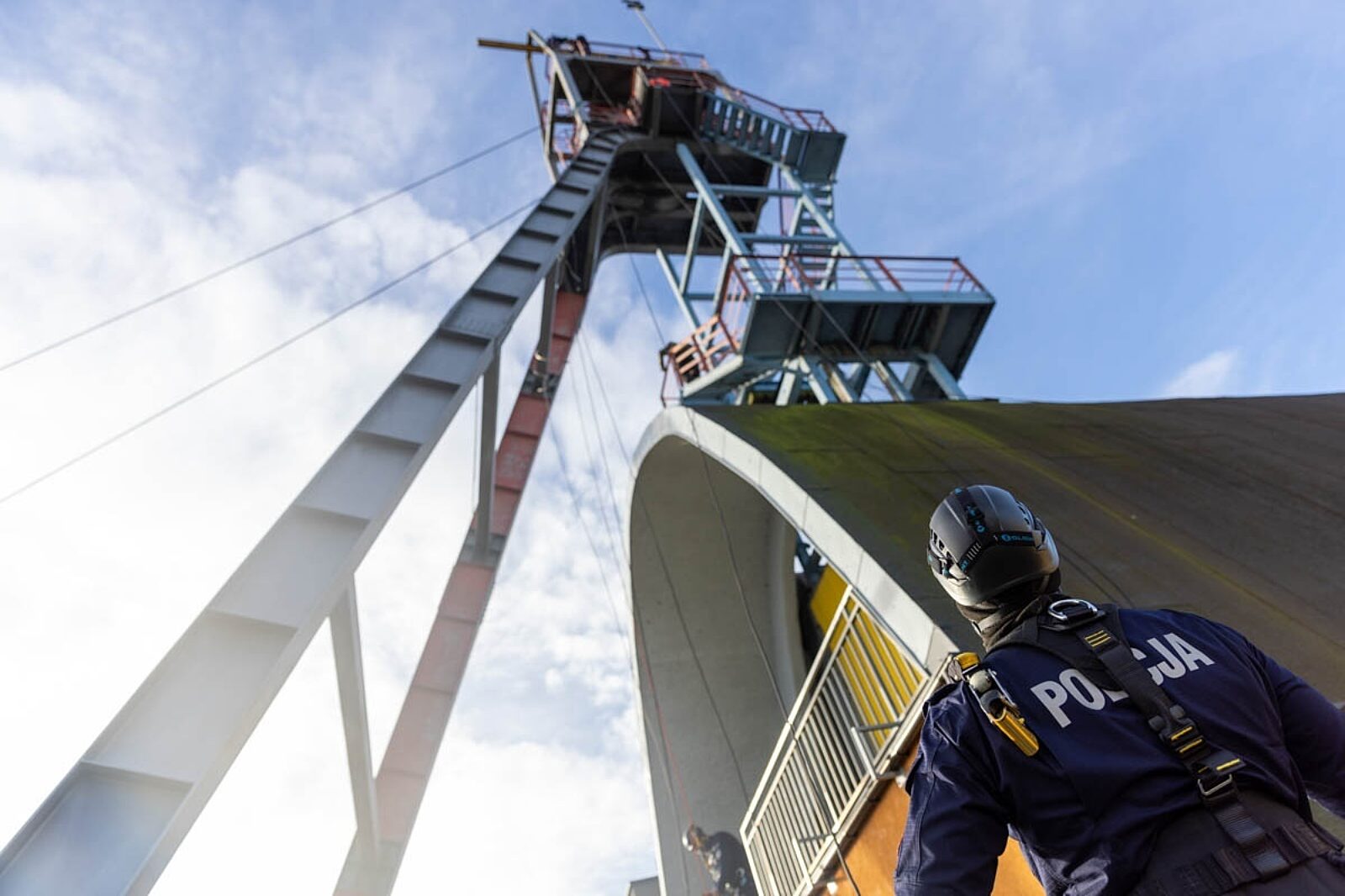 Wspinaczka po wieży szybu tarnogórskiej kopalni