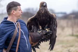 Orły, sokoły są używane do polowań. Orzeł może upolować zająca, lisa, a nawet sarnę. Jeżeli są wykorzystywane do tego celu, to tylko w okresie łowieckim. Na szczególne sukcesy – w porównaniu z dubeltówką czy sztucerem – nie ma co liczyć. Łowy odbywają się tak, jak to się dzieje w naturze. Na 50 ataków na zające orzeł upoluje jednego. A myśliwy z bronią ustrzeliłby dużo więcej.