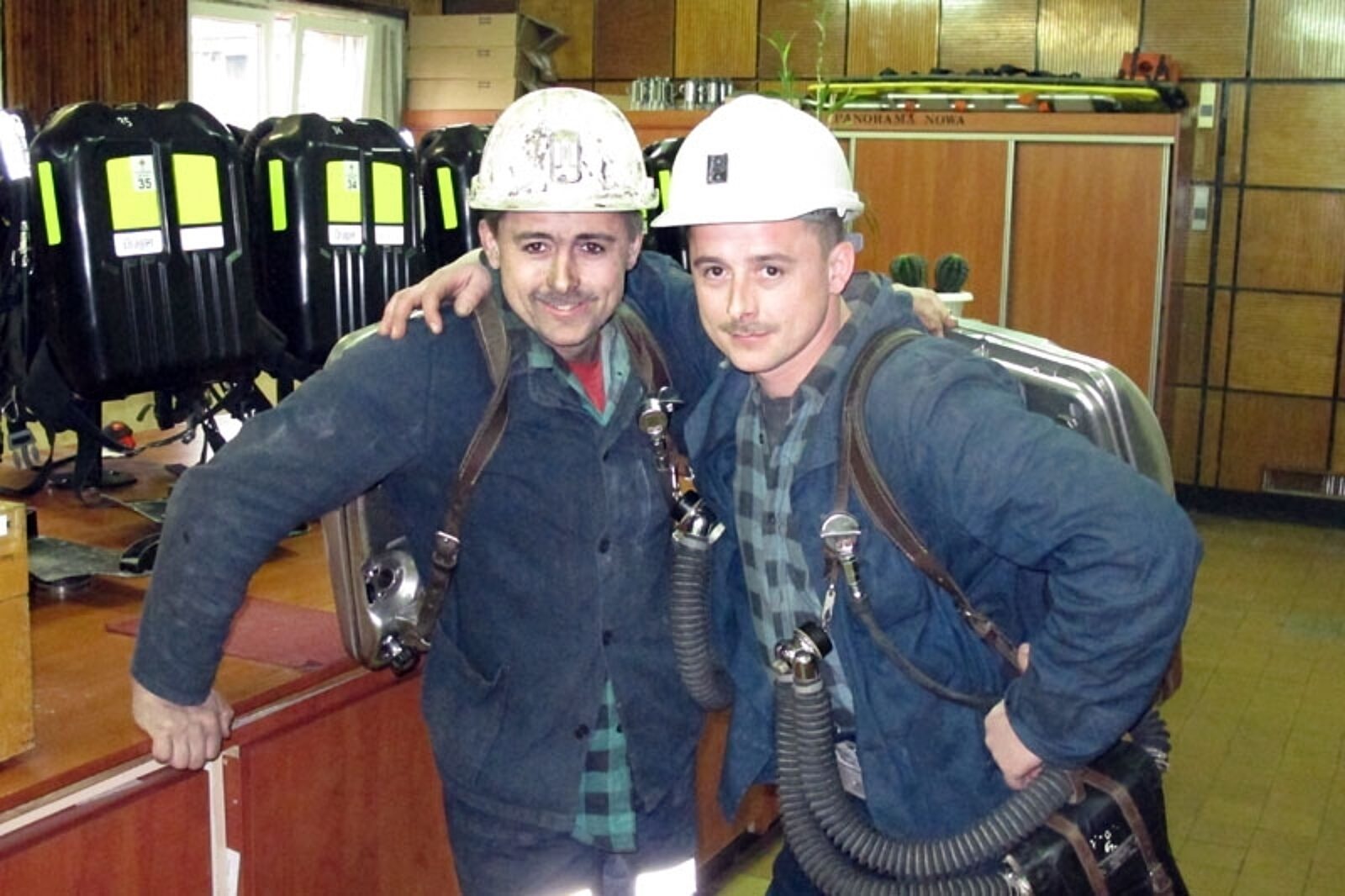 Bracia bliźniacy: Krzysztof (z lewej) i Mirosław Gajdzikowie często mijają się w aparatowni kopalnianej stacji ratownictwa górniczego.