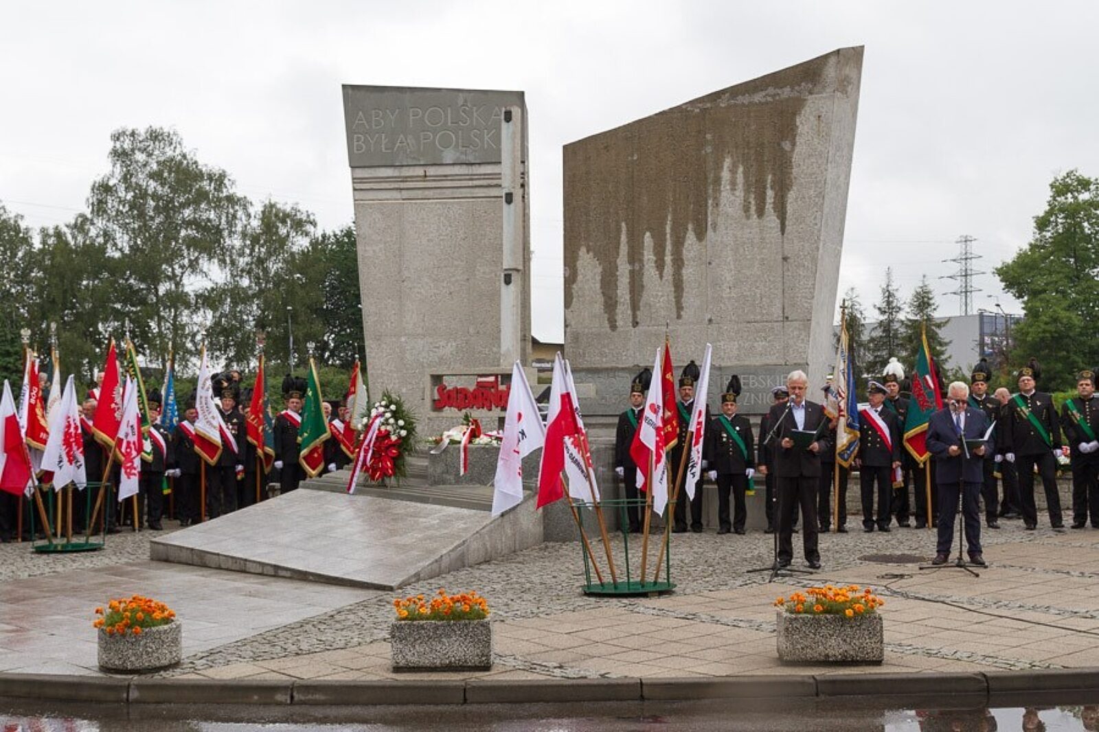 Po wystąpieniach rozpoczęło się składanie wieńców pod pomnikiem Porozumienia Jastrzębskiego. Wśród licznych przybyłych delegacji nie zabrakło przedstawicieli spółek górniczych. Kwiaty złożyli m.in. zarząd Jastrzębskiej Spółki Węglowej, do której należy ruch Zofiówka oraz prezesi Polskiej Grupy Górniczej.