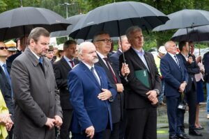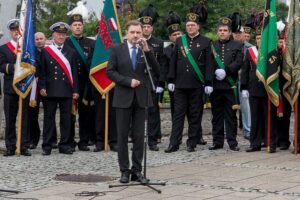 Gości przybyłych na uroczystości przywitali przewodniczący śląsko-dąbrowskiej Solidarności Dominik Kolorz oraz wiceprzewodniczący Solidarność w Jastrzębskiej Spółce Węglowej Roman Brudziński