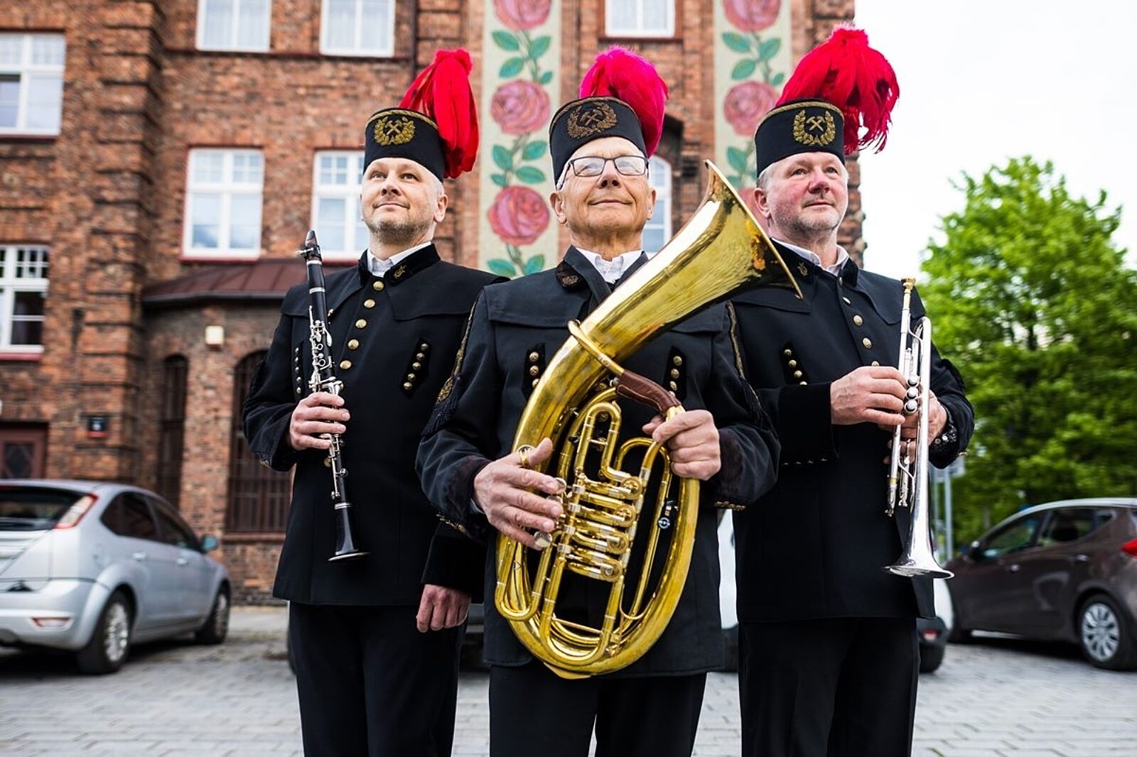 Emerytowany górnik z synami, Grzegorzem i Piotrem, grają w orkiestrze górniczej KWK Katowice