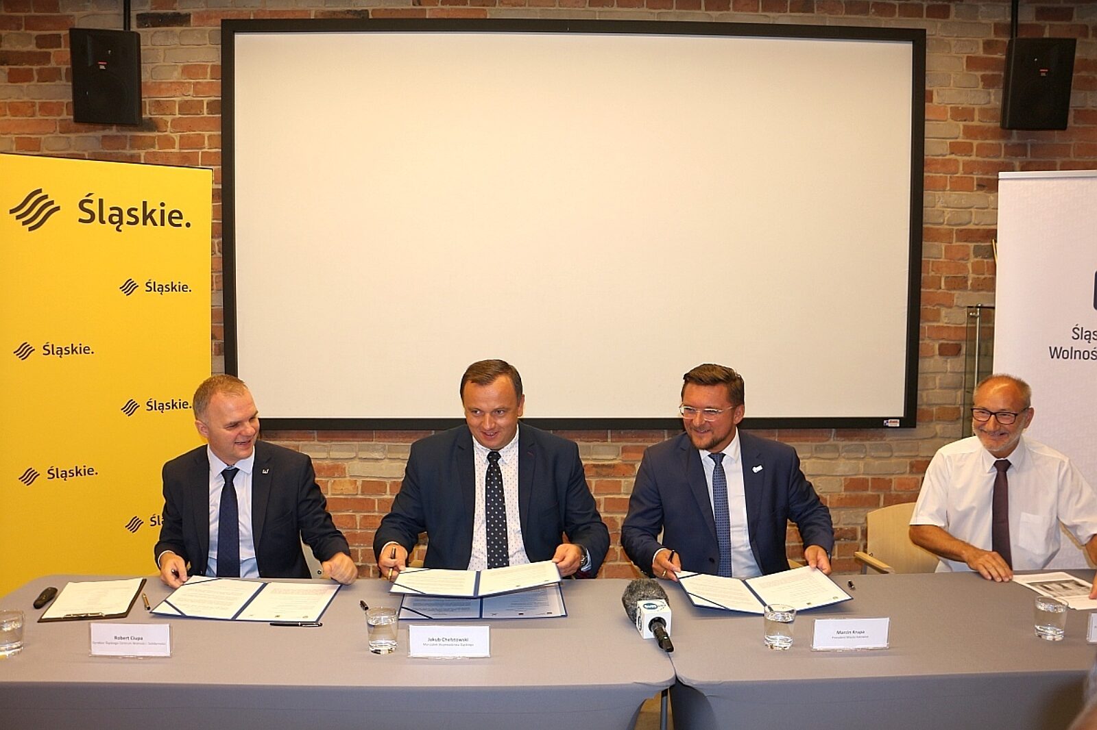 List intencyjny podpisali: marszałek woj. śląskiego Jakub Chełstowski, prezydent Katowic Marcin Krupa oraz dyrektor ŚCWiS Robert Ciupa