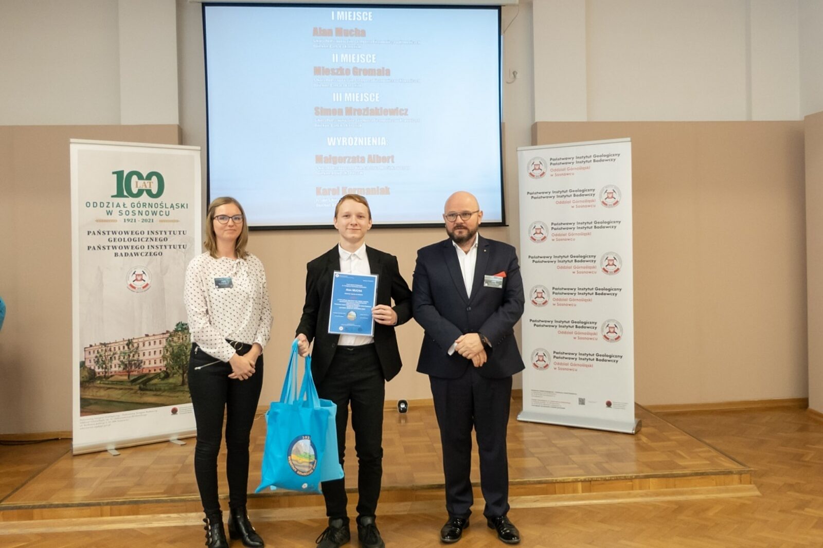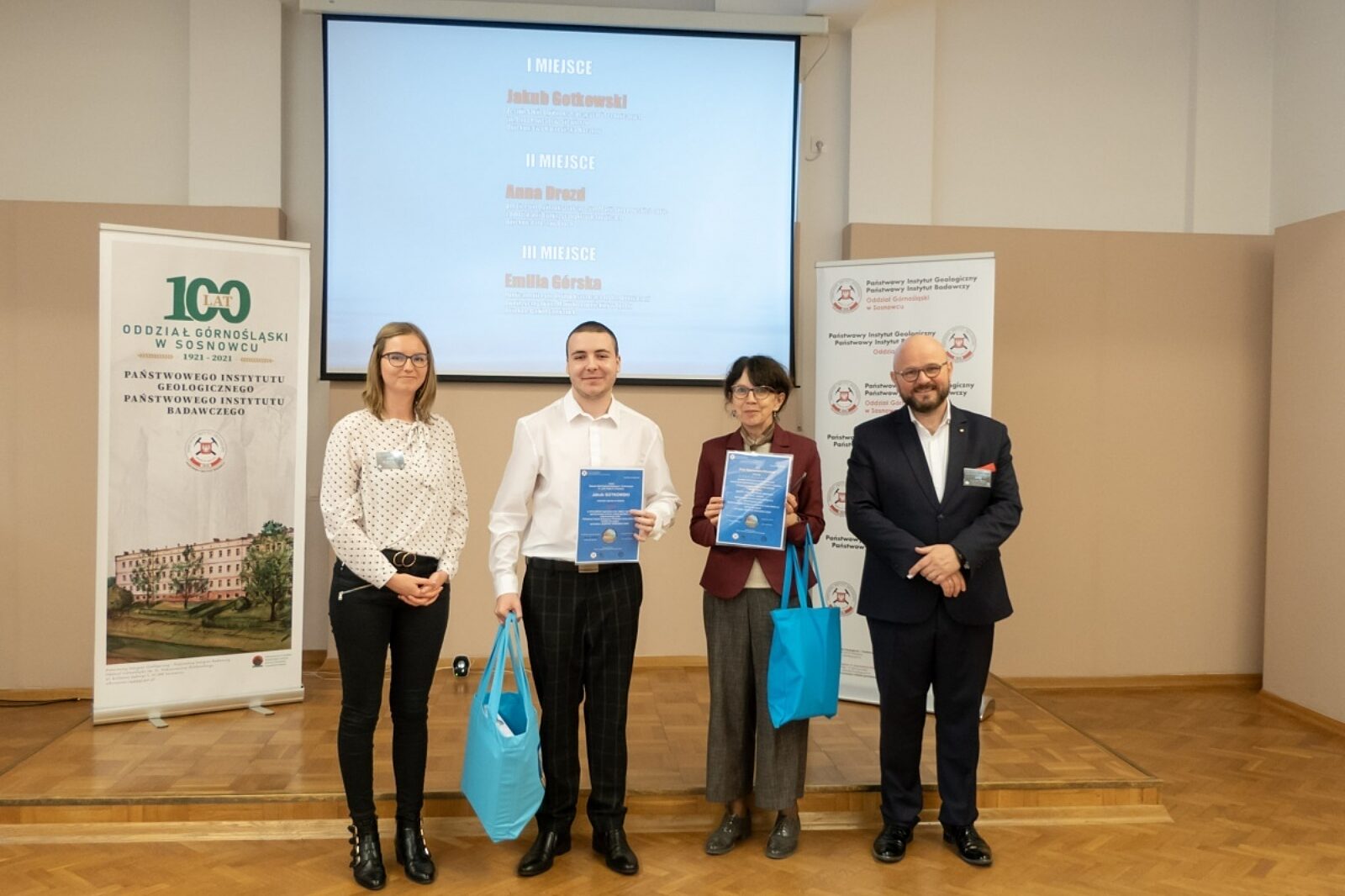 Artur Dyczko, dyrektor Oddziału Górnośląskiego PIG-PIB wraz z grupą laureatów