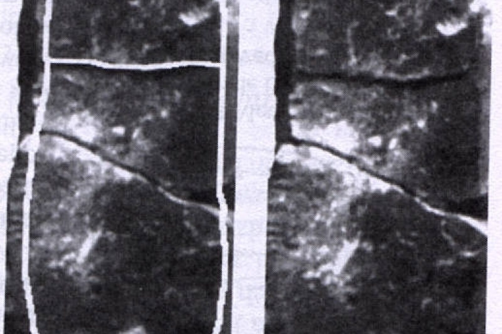 Kamień ma ciemny, szary kolor, 60 cm długości, 30 cm szerokości i 10 cm grubości46. Jest bardzo twardy. Na jego powierzchni nakreślone są linie tworzące doskonałe romby. W środku każdego z nich widoczna jest dość dobrze twarz starego człowieka z dziwnym nacięciem na czole. Wszystkie wizerunki są zdumiewająco podobne. Z wyjątkiem dwóch przedstawień twarze patrzą w prawą stronę. Sposób, w jaki kamień ten znalazł się pod warstwami piaskowca na głębokości ponad 40 m, pozostaje tajemnicą. Górnicy nie próbują tego wyjaśniać. Są jednak pewni, że w miejscu, gdzie go odkryto ziemia nigdy przedtem nie była naruszona".