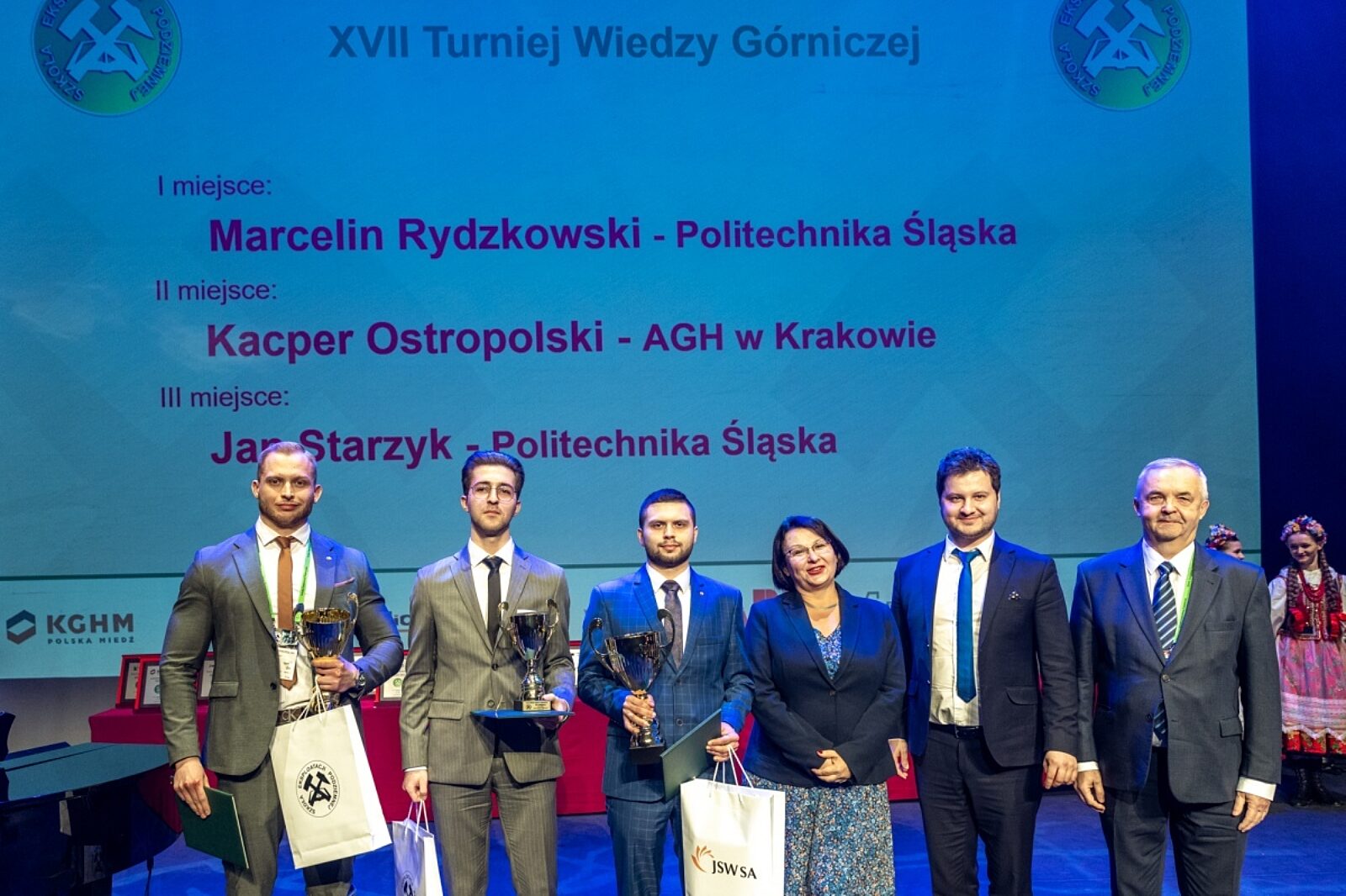 Ostatecznie w 17. edycji Konkursu Wiedzy Górniczej triumfował Marcelin Rydzkowski, student Wydziału Górnictwa, Inżynierii Bezpieczeństwa i Automatyki Przemysłowej Politechniki Śląskiej. Kacper Ostropolski (AGH) i Jan Starzyk (Politechnika Śląska) musieli stoczyć dogrywkę o II i III miejsce. Z tej batalii zwycięsko wyszedł reprezentant krakowskiej uczelni, który zdołał zgromadzić o dwa punkty więcej od swego rywala. A zatem pierwsze i trzecie miejsce przypadło Politechnice Śląskiej, drugie zaś Akademii Górniczo-Hutniczej.