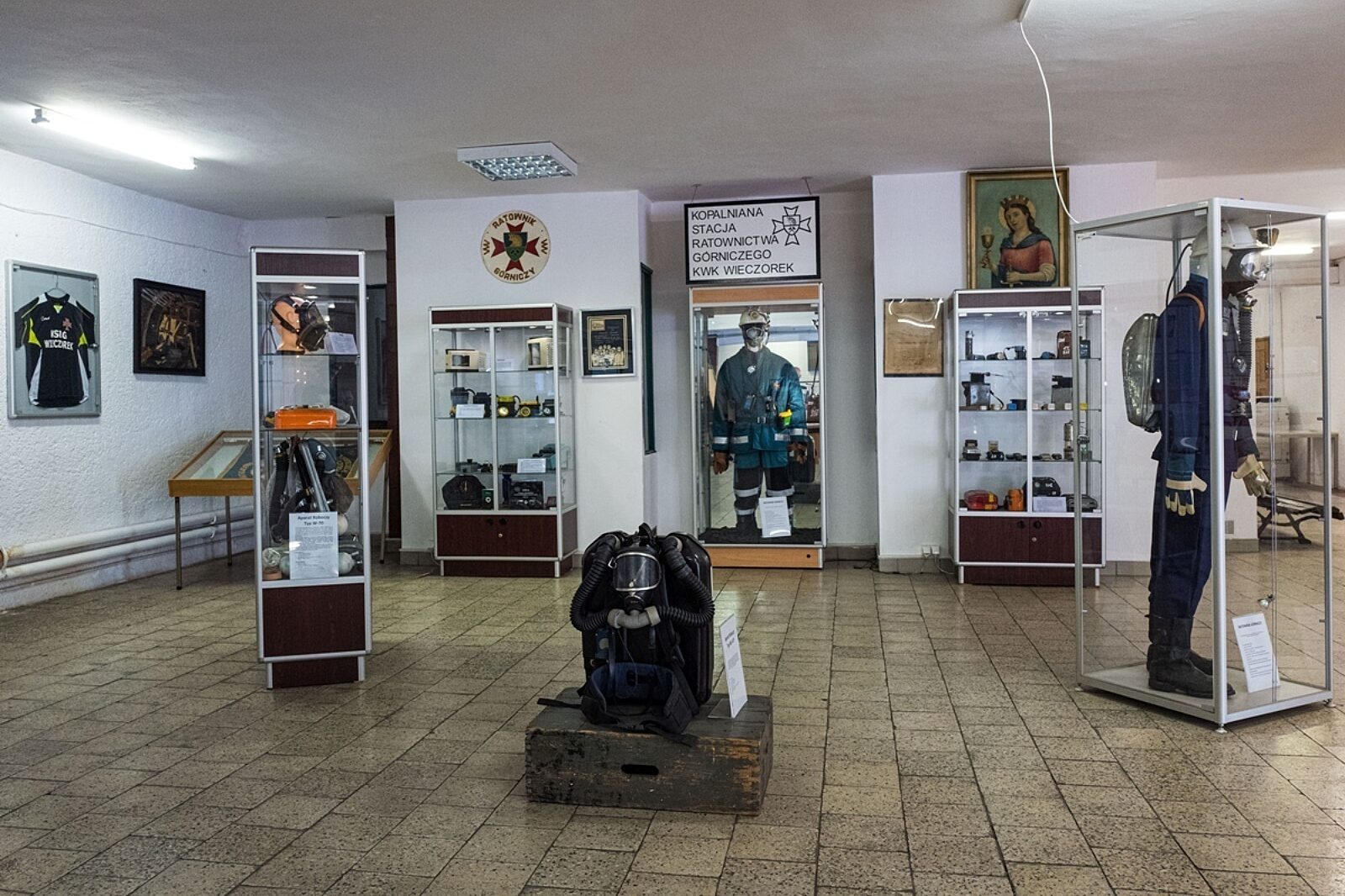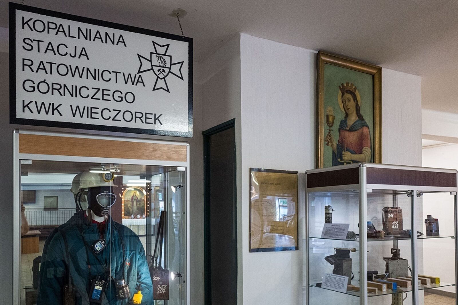 W byłej cechowni jest izba pamięci poświęcona historii ratownictwa w KWK Wieczorek