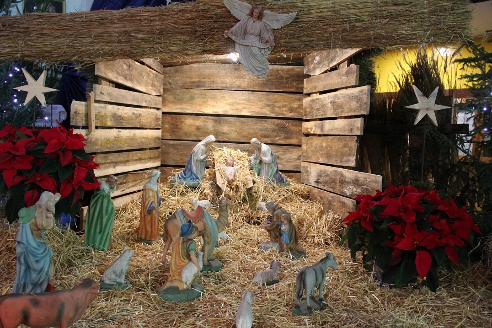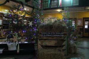 Każdy z odwiedzających cechownię może zabrać sobie garść sianka na stół wigilijny. Paśnik dla zwierząt jest wypełniony po brzegi. Sianka jest więc pod dostatkiem. Systematycznie go też ubywa. Chwili skupienia sprzyja muzyka. Z głośników płyną dźwięki polskich kolęd.