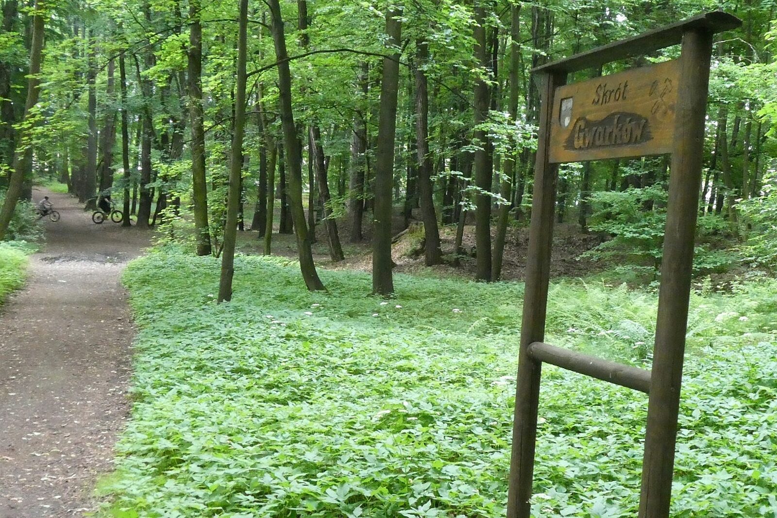Drewniana tabliczka z pustym miejscem po wyrwanym herbie miasta i nierówna nawierzchnia, po której niełatwo przejedzie inwalida na wózku. Tak wygląda Skrót Gwarków, jedna z alejek w głównym parku miejskim w Tarnowskich Górach, rozciągającym się od ul. Bałtyckiej do cmentarza komunalnego koło obwodnicy.