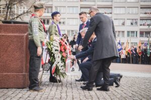 Przemarszowi, który dotarł na plac Chrobrego w Katowicach przewodziły liczne reprezentacje jednostek wojskowych i służb mundurowych