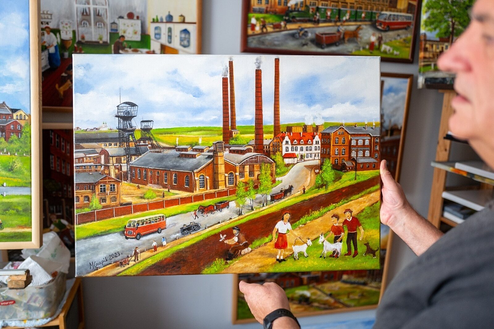 Marian Knapik, malarz amator z Katowic, chce zachować w swoich pracach magiczny Śląsk
