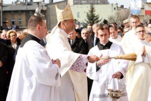 - Niech ta tablica będzie znakiem, który łączy. Nie dzieli Polaków - mówił w homilii bp Kaszak, który podkreślił, że uroczystości odbywają się wyjątkowym dniu, bo w Niedzielę Miłosierdzia Bożego.