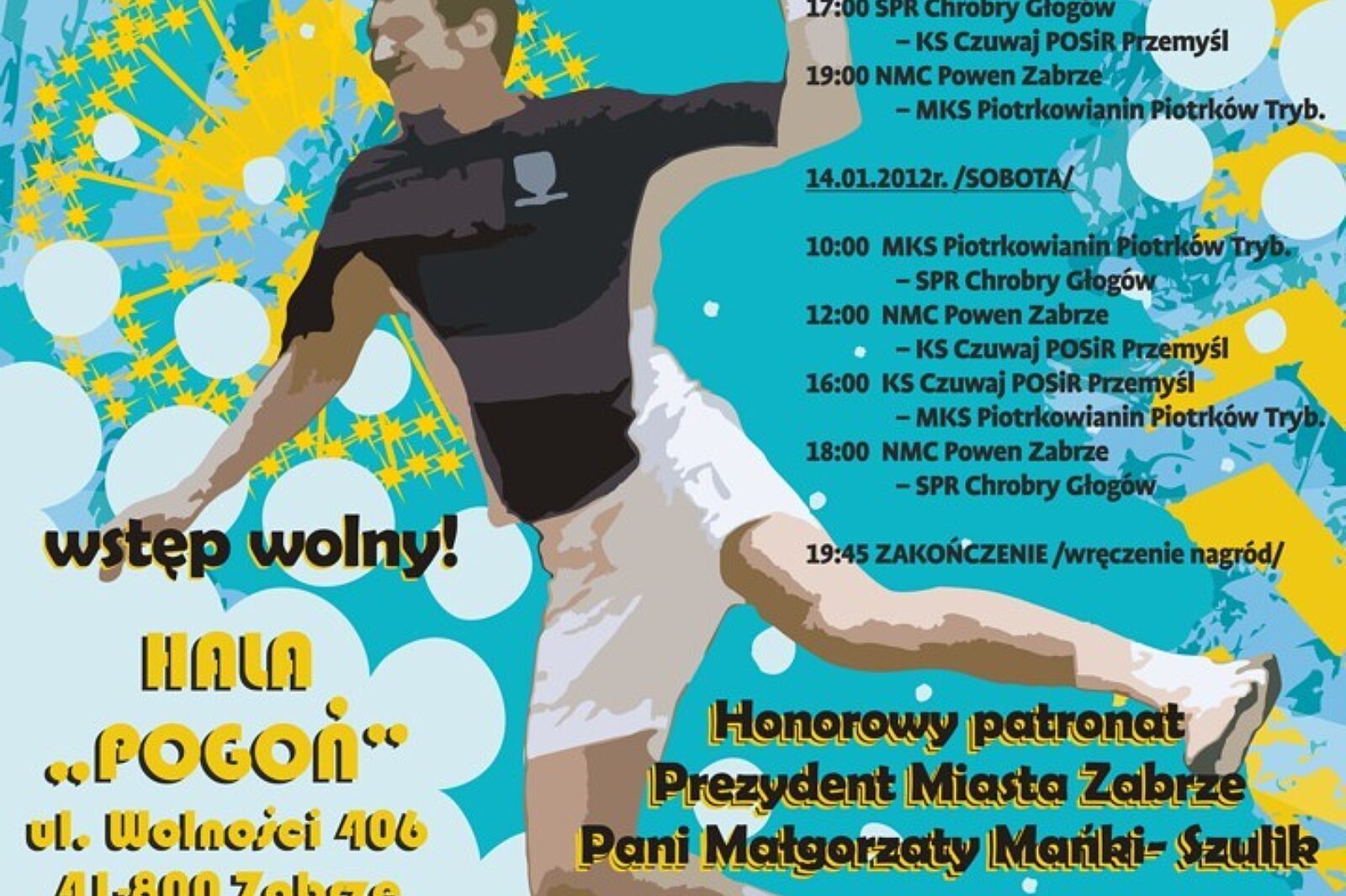 Honorowy patronat nad imprezą objęła pani prezydent Zabrza, Małgorzata Mańka-Szulik. Wstęp na turniej jest wolny.