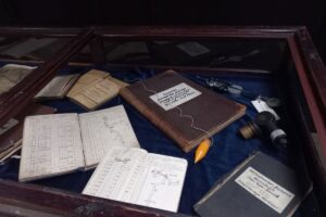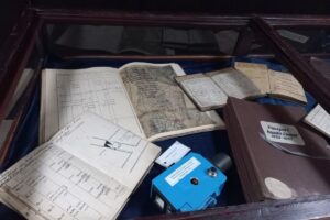 Poza tym w dąbrowskiej Sztygarce zobaczymy stół kreślarski, sprzęt mierniczy, notatniki, dzienniki. Jest „Paszport kopalni Czeladź” z lat 1953-1957, czyli gruba księga zawierająca wszystkie informacje na temat kopalni, jest też mapa z kopalni Józef w Burkach (dzielnicy Sławkowa).