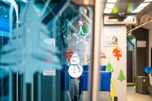 Dekoracje, które umilają podróż pasażerom podczas regularnych kursów, powstały specjalnie na przejazd Pociągu Świątecznych Marzeń 12 grudnia. Świąteczny nastrój zapanował na pokładzie Impulsa 2 – jednego z pociągów, które Koleje Śląskie i Województwo Śląskie zamówiły dzięki środkom pozyskanym z Krajowego Planu Odbudowy.