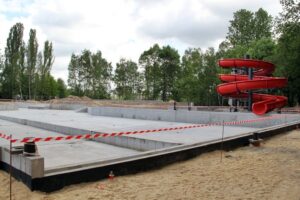 Wicepremier Elżbieta Bieńkowska, europoseł prof. Jerzy Buzek oraz wiceprezes Wojewódzkiego Funduszu Ochrony Środowiska w Katowicach Adam Liwochowski w sobotę (10 maja) wzięli udział w Dniach Otwartych Funduszy Unijnych, które odbyły się w Świętochłowicach. W czasie swojej wizyty mieli okazję obejrzeć m.in. inwestycję realizowaną na basenie Skałka. Po placu budowy gości oprowadził prezydent Świętochłowic Dawid Kostempski.