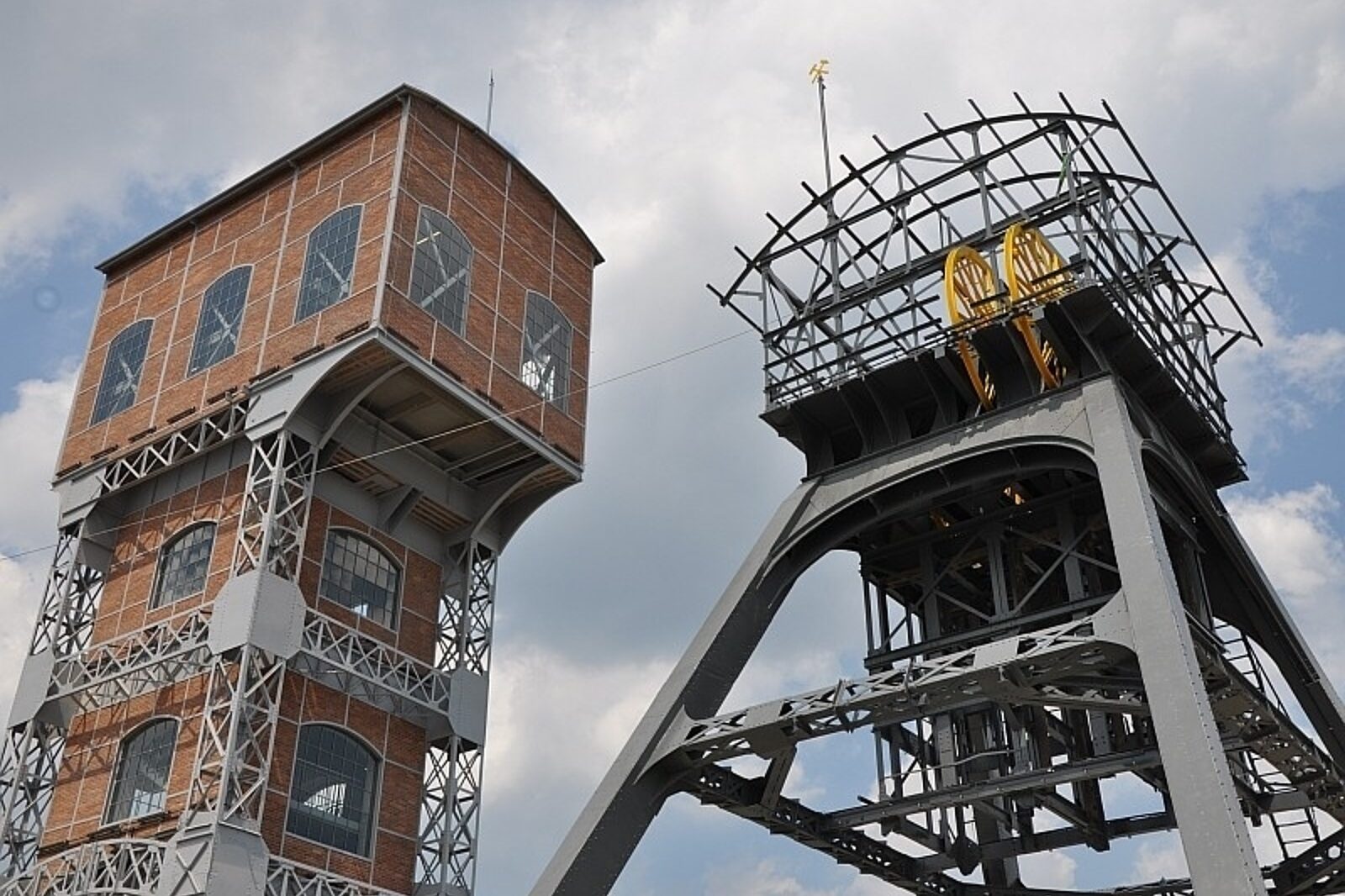 Zgodnie z planem, obie wieże przeszły gruntowny remont. Jedna, wybudowana w 1908 roku, to rzadko spotykana w regionie tzw. wieża basztowa o stalowej konstrukcji wypełnionej cegłą. Ma prawie 30 m wysokości, a jej "sercem" jest elektryczna maszyna wyciągowa. To na niej powstała jedna z największych atrakcji - dwupoziomowy taras widokowy.