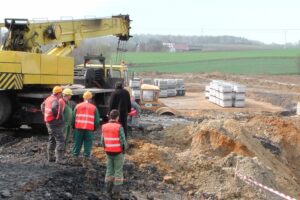 Po konsolidacji górotworu z obudową trwa głębienie szybu 1 Bzie. Na newralgiczny moment natrafiono na głębokości około 290 metrów