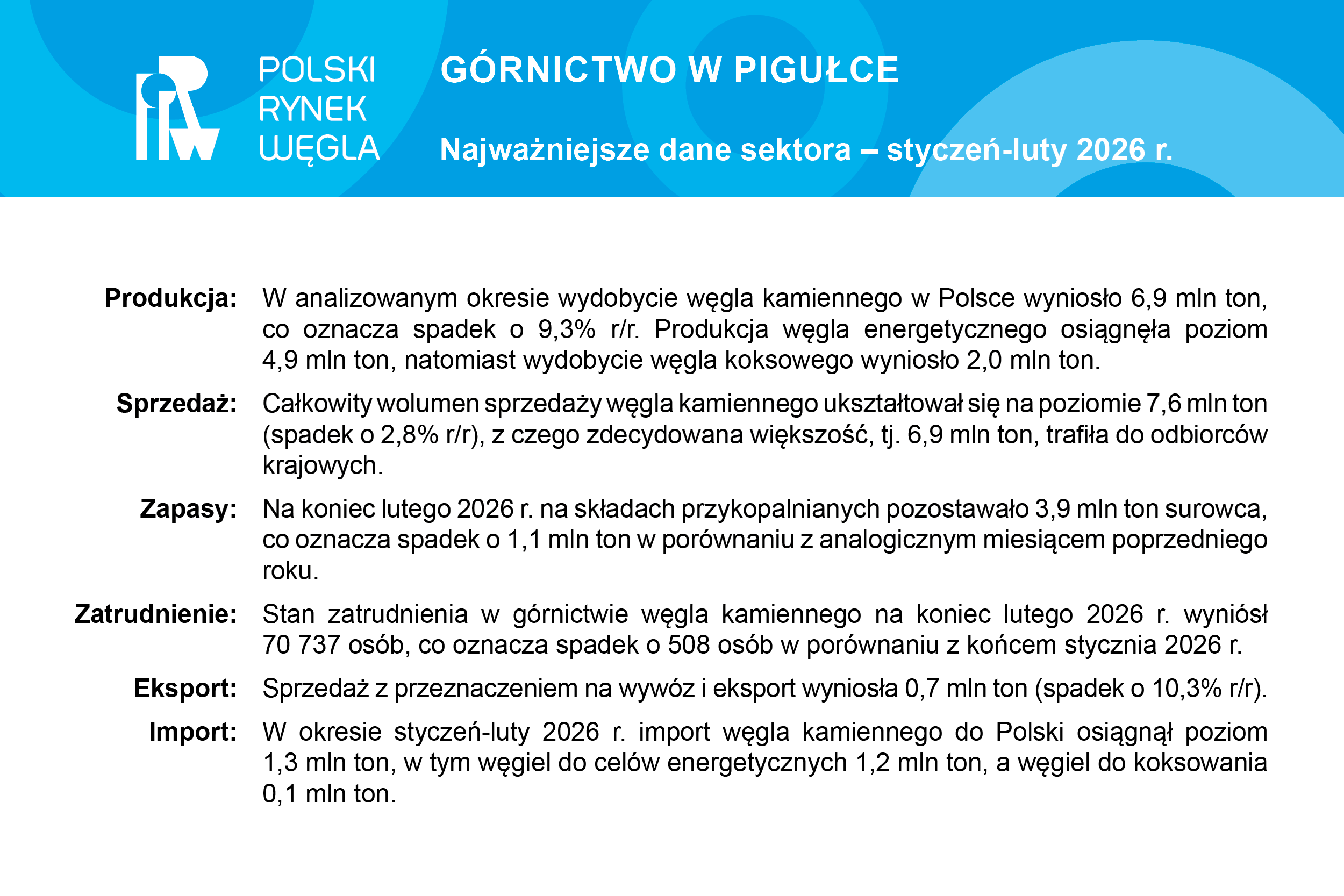 Szczegółowe dane dotyczące sytuacji na polskim rynku węgla dostępne są w serwisie Polski Rynek Węgla - https://polskirynekwegla.pl/