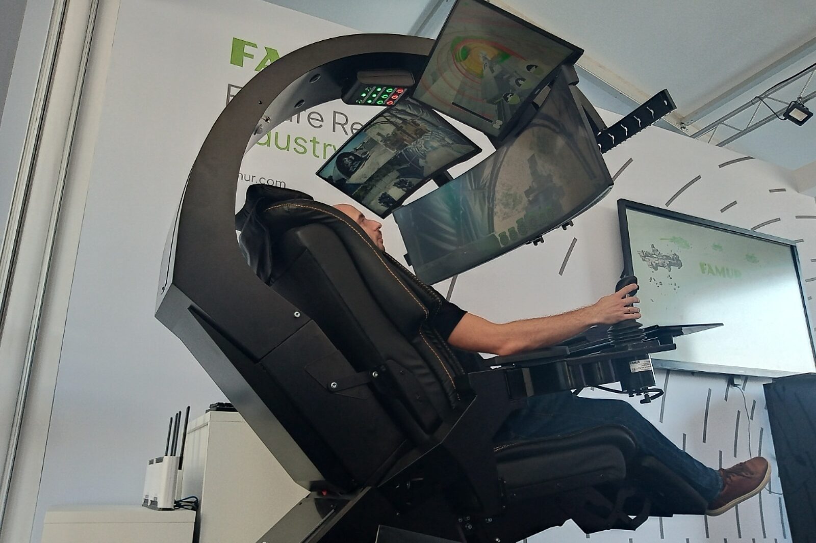 – Stanowisko posiada funkcję odwzorowania bodźców towarzyszących operatorowi, jak widok główny obrazu panoramicznego 180 stopni z perspektywy fotela kombajnisty, system kamer pomocniczych, odwzorowanie maszyny w aplikacji 3D dla pełnej kontroli nawet w całkowitym zapyleniu, dźwięk przestrzenny oraz wibracje fotela odwzorowujące bodźce panujące na kontrolowanym kombajnie, co pozwala czuć maszynę analogicznie jak w czasie faktycznego sterowania nią, odbierając te bodźce, do których przywykł kombajnista. Dodatkowo funkcja „zero gravity” umożliwia wygodne ułożenie operatora w pozycji półleżącej, co znacząco poprawia komfort pracy – wyjaśnia Karol Bartodziej, dyrektor ds. rozwoju systemów sterowania w spółce Famur Pro.