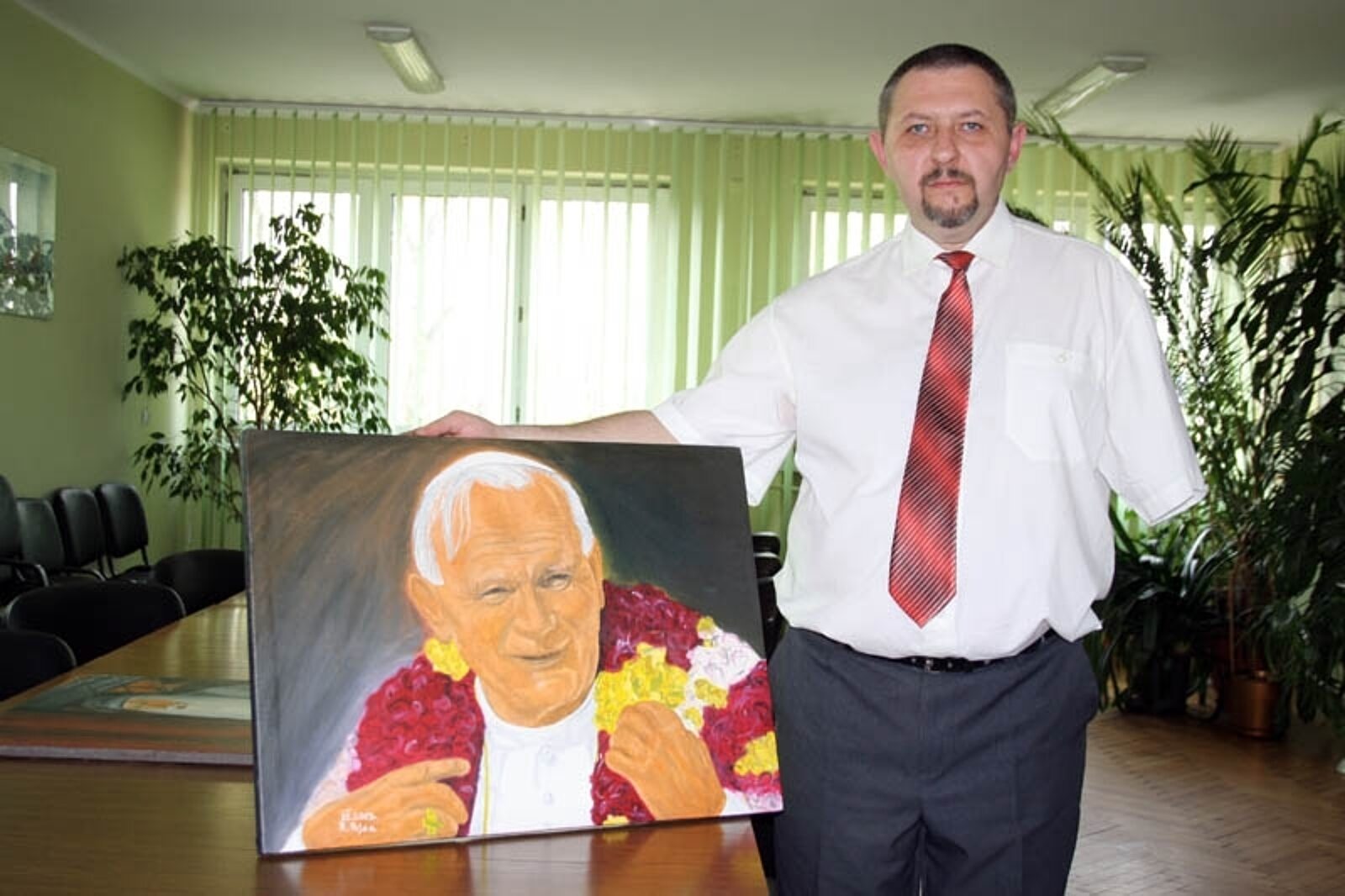 Portrety papieża Polaka to jeden z jego ulubionych tematów. Malarz z Radlina potrafi oddać na płótnie każdy, nawet najdrobniejszy szczegół twarzy Jana Pawła II. Na jego obrazach Ojciec Święty jest zawsze uśmiechnięty, pełen życia, taki, jak podczas pierwszych pielgrzymek do ojczyzny.