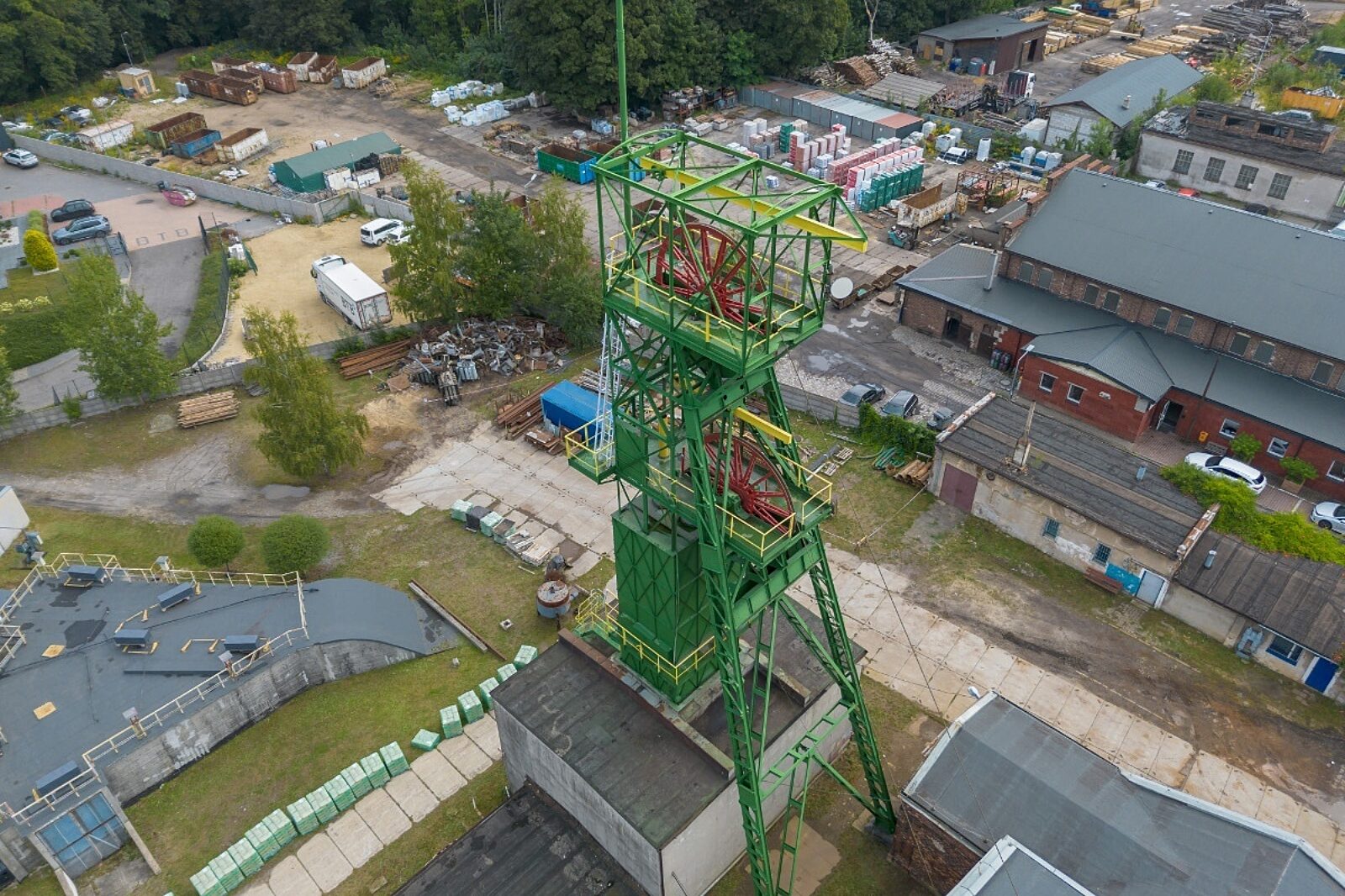 Wieża szybu Bańgów z lotu ptaka