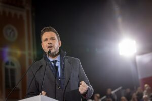 Wybory prezydenckie 2025. Z sondażowych wyników przedstawionych o godz. 21. przez Ipsos wynika, że pierwszą turę wygrał kandydat Koalicji Obywatelskiej, Rafał Trzaskowski. W drugiej turze wyborów (1 czerwca) zmierzy się z Karolem Nawrockim, kandydatem popieranym przez Prawo i Sprawiedliwość. Jak wynika z sondażu Ipsos Rafał Trzaskowski zdobył 30,8 proc. głosów. Drugie miejsce