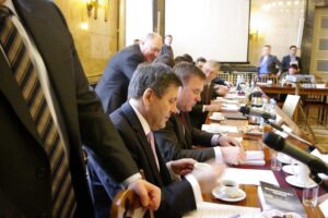 Organizacji kolejowego transportu publicznego w województwie śląskim poświęcone było poniedziałkowe (17 czerwca) posiedzenie Wojewódzkiej Komisji Dialogu Społecznego w Śląskim Urzędzie Wojewódzkim. Przewodniczył mu wicewojewoda śląski Piotr Spyra - informuje urząd.Wnioskodawcą tematyki spotkania był Dominik Kolorz, przewodniczący zarządu regionu