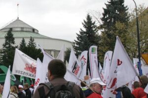 Przedstawiciele górniczych związkowców demonstrowali w środę (1 października) przed Sejmem w czasie, gdy swoje expose wygłaszała premier Ewa Kopacz. Liczymy, że pani premier przekaże nam sygnał, że branża nie została sama – deklarują.
