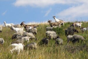 Kozy i owce w nieczynnym kamieniołomie