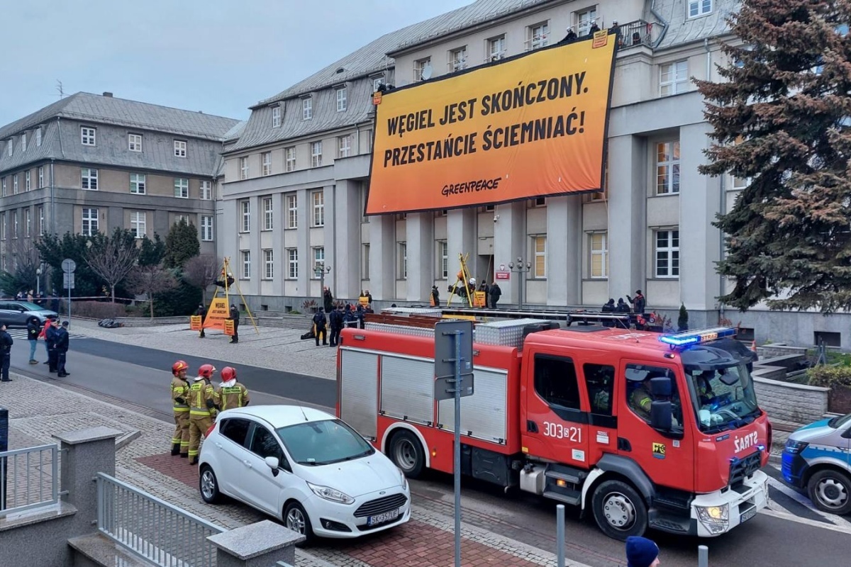 W Barbórkę akcja Greenpeace przy siedzibie Ministerstwa Przemysłu
