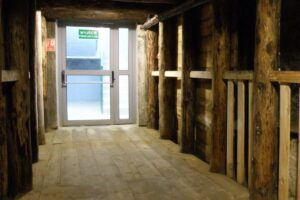 Obudowa górnicza w dawnej kopalni piasku do wymiany