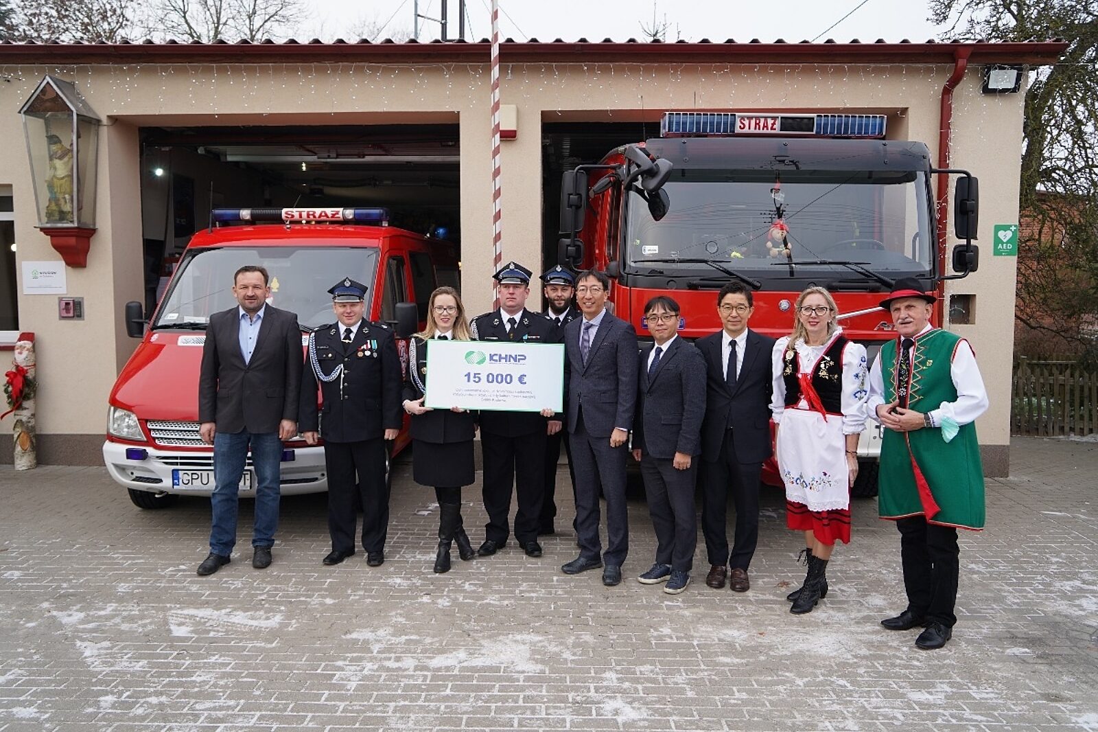 Przy okazji wizyty KHNP przekazało darowiznę. Gmina zamierza za te pieniądze doposażyć strażaków