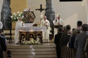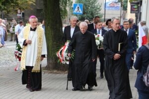 Mszę św. w kościele pw. Świętych Apostołów Piotra i Pawła celebrował pochodzący z Tarnowskich Gór bp Adam Wodarczyk, sufragan diecezji katowickiej. W świątyni zgromadzili się licznie tarnogórzanie i mieszkańcy regionu, związkowcy, parlamentarzyści, przedstawiciele służb mundurowych. Poczty sztandarowe wystawili m.in. górnicy, kolejarze, strażacy, szkoły i organizacje społeczne i młodzieżowe. Odśpiewano dziękczynnie "Boże, coś Polskę".