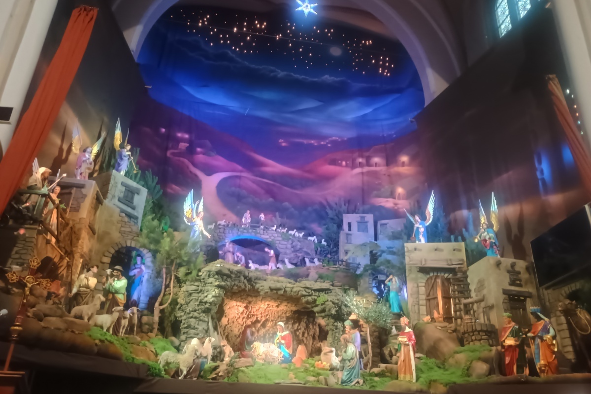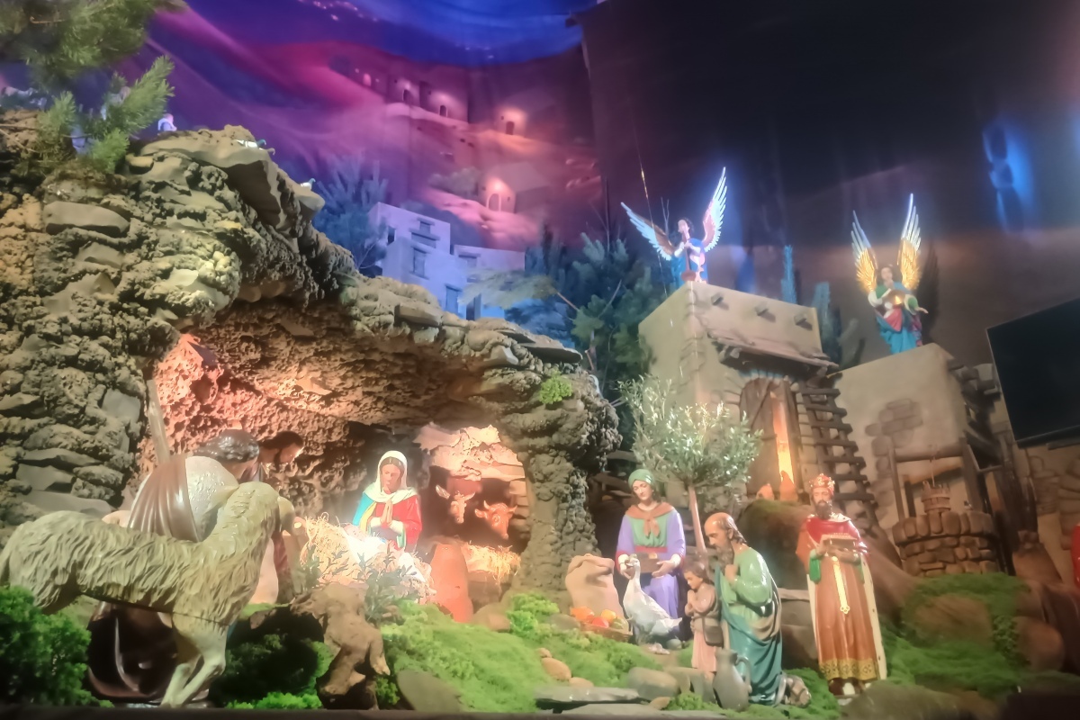 Wierni odwiedzający bazylikę zobaczą łącznie 76 figur wykonanych z drewna, gipsu i żywicy. 26 postaci ludzkich (pasterze, królowie, Święta Rodzina), 6 aniołów zwiastujących Nowinę, 35 baranków oraz 15 figur przedstawiających inne zwierzęta – w tym woła, osła i sporej wielkości wielbłąda. Wśród nich znajdują się zabytkowe rzeźby z XIX w., a także wyjątkowa figura Dzieciątka Jezus, przywieziona w 1981 r. prosto z Betlejem.