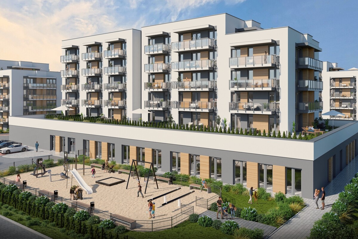 Wyobraź sobie sobotni poranek. Promienie słońca wpadają przez szerokie okna Twojego nowego mieszkania. Najmłodsi budzą się z podekscytowaniem – dziś wybieracie się na plac zabaw. Nie musisz pakować ich do samochodu ani planować całego dnia – wystarczy wyjść z bloku. Tuż obok, w sercu osiedla, czeka na Was 450 m² przestrzeni do zabawy i radości. Ty możesz usiąść z kawą na ławce, a oni – biegać, wspinać i śmiać się do woli.