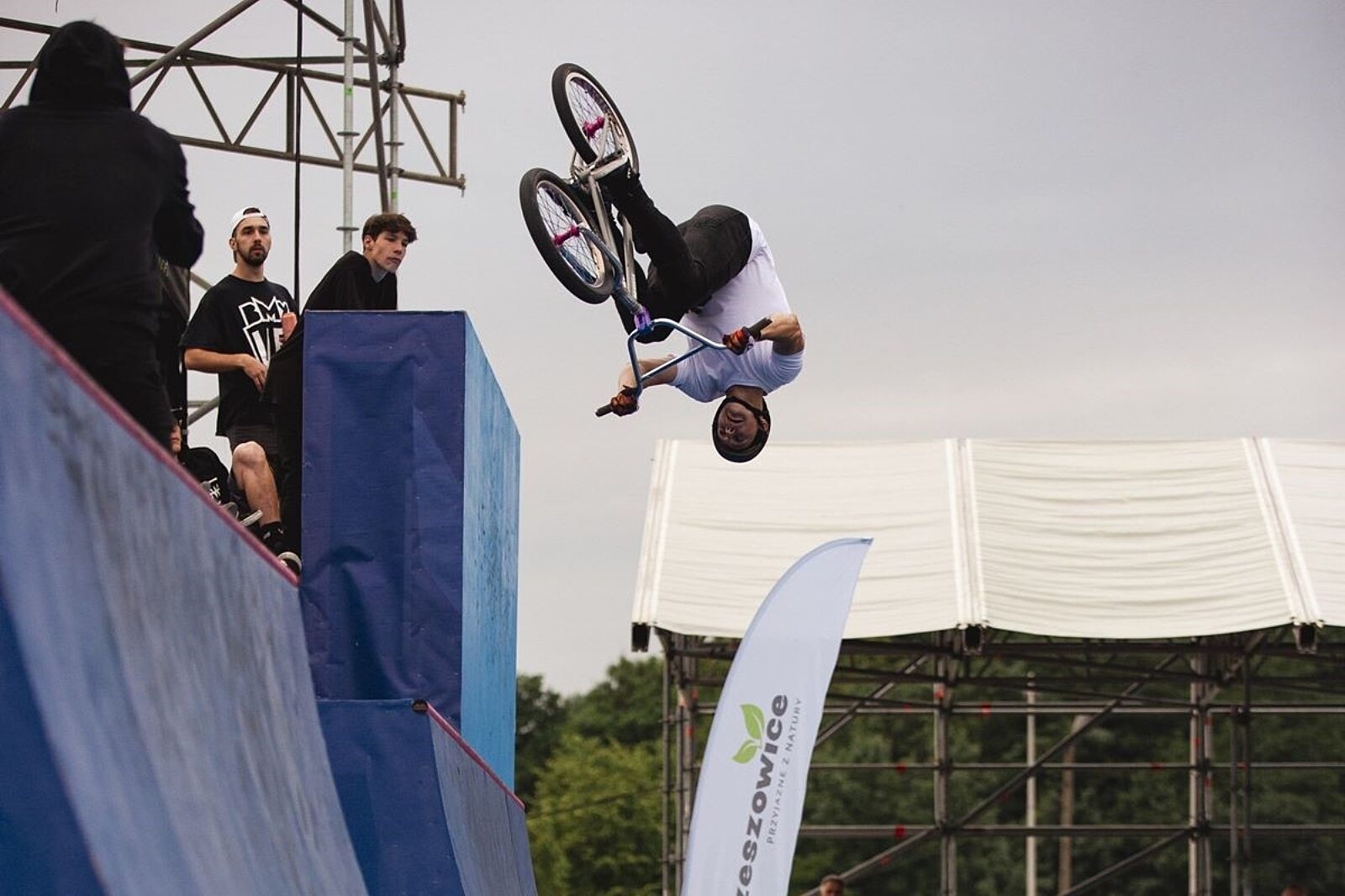 Mistrz Polski, cyklista freestyle’owy Piotr Leszczyński (na zdj. w środku)