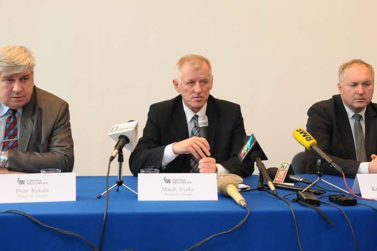 W odpowiedzi na pytanie jednego z dziennikarzy wiceprezes Uszko (w środku) zadeklarował, że niewykluczony jest powrót do projektu sprzedaży kopalni Piekary